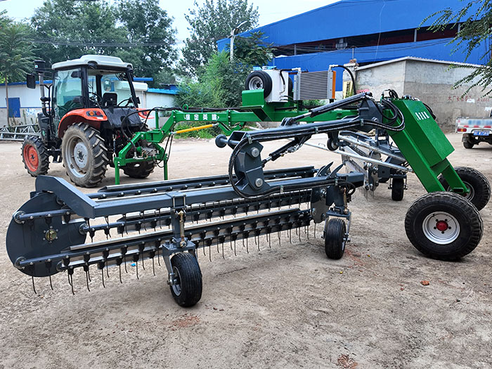 横向搂草机有牵引式、悬挂式等类型,其工作部件是一排横向并列的圆孤形或螺旋形弹齿。作业时,搂草机弹齿尖...